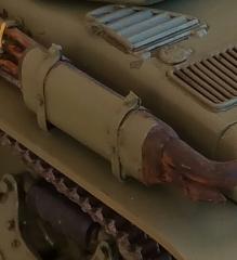 Teava tunului este din metal, un alt detaliu pe care l-am confectionat din teava de alama .Asemenea, suportul sculelor(pe laterala stanga a tancului) l-am incropit din tabla de alama(in kit nu era reprezentat defel).