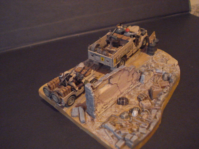 Dupa o noapte lunga,am reusit sa finalizez si acest kit absolut extraordinar.Mi-am dorit acest kit de la inceputurile mele modelistice,asa ca va dati seama ca nu pot avea decat cuvinte de lauda pt el.Desi are o vechime apreciabila ,e un kit superb,se imbina usor,cu bavuri nesemnificative,dar cu o multime de accesorii pt cele 2 vehicole.Impreuna cu fig.si cu minidiorama impresia lasata e una foarte realista.