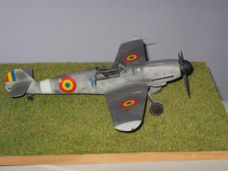 Daca ai cartea "Les Messerschmitt Bf 109 Roumains", pe pagina 64 e o poza cu un avion similar, "4 Rosu". In poza aia se vad cocardele de pe aripi care par sa acopere complet crucile germane - e posibil (dar nu neaparat) ca "1 Albastru"a fost la fel.