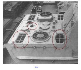 - din ce pot vedea (din nou fotografia este neclara) cutia aia suplimentara de scule de pe placa din spate a suprastructurii, pe stanga, este perfect paralelipipedica - adica vederea plana, din spate, este un dreptunghi. Iar partea ei superioara este usor inclinata spre spate, cam la 5 grade fata de orizontala. Dar, repet, nici aici nu este foarte clar.
