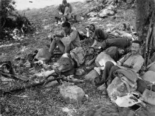 ..."ne croiam drum pe o poteca ingusta;deodata un hun,cu un Messerschmitt a trecut pe deasupra,tragind cu toate armele.Am simtit caldura gloantelor ce zburau prin fata mea si am vazut vanturate aproape toate frunzele maslinului sub care tocmai ma trantisem la pamant.Mi-am spus-drace,acuma ala'stie unde suntem;clar nu-i un loc bun pentru puiu'lu'mama-asa ca m-am ridicat si am traversat drumul trecind cat mai adinc printre maslinii aia,cu directia spre punctul nostru de intalnire.Si bine am facut;avionul ala s-a intors si a mai trecut odata pe deasupra potecii,tragind...dar nu transversal,ca prima data ci de-a lungul;a curatat vreo cinsprezece tipi de acolo" >D.V.David-"Crete"<