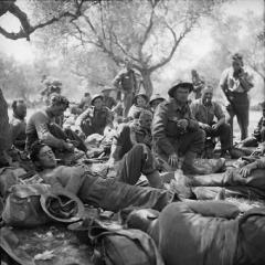 La acea intersectie ne aflam noi.Erau mii de soldati,odihnindu-se pe sub maslini.Nemtii dadeau tarcoale,luau la tinta si mitraliau pe oricine.Era un tip,pe nume Ted Smale-cu mine,toata lumea cauta cate ceva din putinul ramas,si Ted a gasit doua conserve de carne.Tocmai le mancam cand avioanele germane au inceput sa traga din nou.Gee,fluierau gloantele in toate directiile!