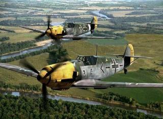 Adolf Galland și coechipierul său, Joachim Muncheberg (104 ,respectiv 135 de victorii) în E-urile lor(JG 26).