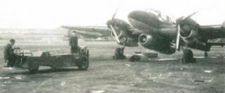 O foto interesanta , legenda spune ca este 110 v17 la care i-au adaugat motorul reactiv , ... dar oare ce ar putea fi acea ... masinarie (tractor?) din fatza avionului ?