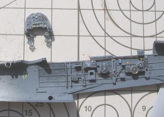 Pentru bordul la 1/48 e dat un decal...inutilizabil. A fost facut din pesnula cu negru email de la Revell (9) si alb ulei. Au fost adaugate manetele pompei de combustibil, a voletilor radiatorului si inca una (rosie) care nu stiu ce-i! Aceleasi manete au fost adaugate si la scara 1/72 (sper sa ramina la locul lor pina inchid fuselajul!!!!)