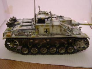 Este vorba despre un Sturmgeschutz 3 , un anti-tanc construit de germani in timpul WW2,unul din cele mai eficace tancuri ale wehrmacht-ului, construit pe sasiu de Panzer 3 ,dotat cu un tun calibrul 75mm.Acest Stug a distrus multe tancuri inamice decat Tiger si Panther la un loc , blindajul este intre 16-80 mm si o greutate de 23,8 tone si putea atinge o viteza de 40 km/ora
