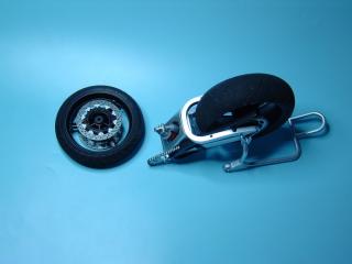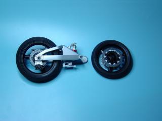 Furca spate a fost inchisa intr-un loc unde Tamiya deobicei nu inchide acea componenta. Multi folosesc chituri expoxidice sau de polyester, eu am ales foaie de stiren. Cadrul si furca spate a fost vopsita cu grund alb Tamiya iar dupa o saptamana in care am permis grundului sa se usuce bine bine am aplicat vopseaua Tamiya TS 30 Silver Leaf.