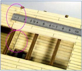 Aracetul se usuca incet si asta poate duce la deformari/deplasarile coastelor ,etc. Dupa fixarea in sectiune cu adeziv poliuretanic ,poti "intarii "lipitura pe contur cu o pelicula de aracet.Este extrem de important ca lipiturile sa fie foarte tari ,pentru ca atunci cand vei placa /imbraca corpul navei ,sa nu apara riscul de deformare/contorsionare ,pe lungime ,a intregii lucrari.N-ai vrea ca atunci cand privesti corabia chiar din fata ,sa-i vezi pupa ,in alta parte ,mai la stanga ori mai la dreapta ,sau ca puntea sa fie contorsionata,bombata sau curbata etc.