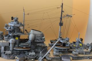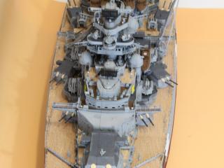 Bismarck-ul meu. Aproape am terminat suprastructurile. Mai am cateva piese de lipit, reparat cu pensula cateva zone unde s-a zgariat vopseaua, un wash mai light pentru evidentiat detaliile dupa care protejat totul cu un lac transparent.