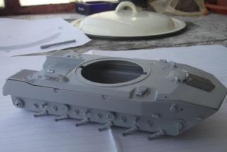 - s-au confectionat tot din tablita si aplicat aparatori "din cauciuc" antinoroi banuiesc , pe aripile fata si partile din spate ale blindatului/machetei pt senile.