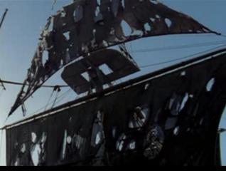 Trecand peste faptul ca in spatele velei din partea de jos a imaginii postate de tine se vede o vela alb-albastruie ce ajuta in cursul filmarilor (prin umbrele ce se proiectau pe ea) la obtinerea efectului de profunzime al velei negre zdrentuite, eu am remarcat altceva: -Velele din imaginile prezentate in film sunt zdrentuite, iar tu le-ai reprezentat sfasiate din prima treime superioara si pana jos, fara a lasa tivul inferior intact.