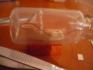 Cea mai mare greseala a fost crearea "apei" din sticla. Am folosit ceara rasa, am pus-o in sticla si am incalzit sticla pe dedesubt cu un pistol cu aer cald pana s-a topit si s-a nivelat ceara. MARE GRESEALA....