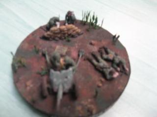 Vreau sa va prezint o vigneta facuta de mine cu ajutorul a 2 kit-uri pe care le-am comandat de pe un site. Suportul este facut dintr-un capac de borcan si sacii de nisip sunt facuti din boabe de orez, lipite cu silicon. Toate sunt pictate cu tempera si acrilice. Scuzati caliatatea pozelor. :pardon: